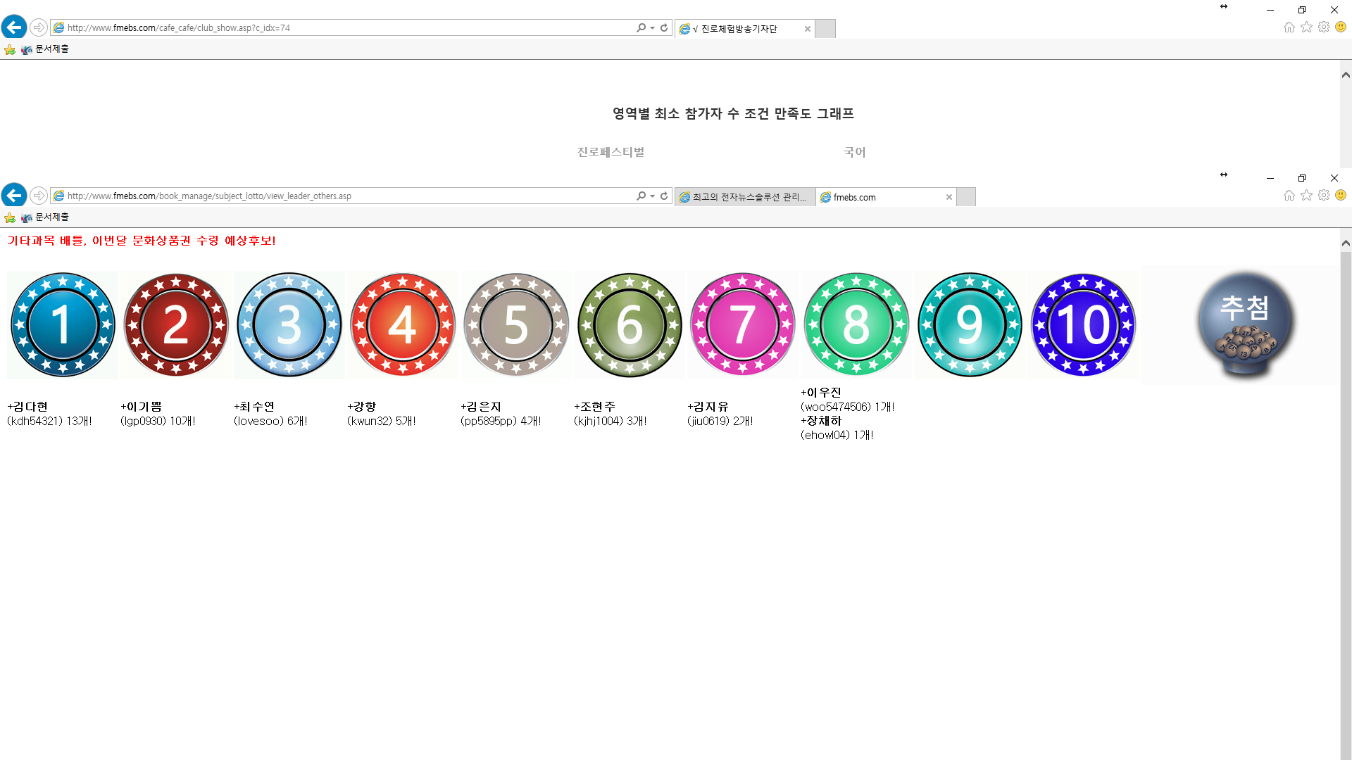 3~10µî, Ãß÷Àº °¢°¢ 5,000¿øÂ¥¸® ¹®È»óǰ±Ç ÇÑ À徿 ¹Þ½À´Ï´Ù.