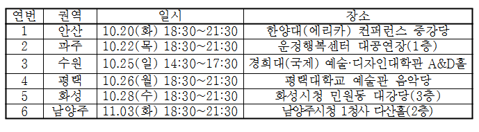 À̹ø ¼³¸íȸ´Â ¾È»ê, ÆÄÁÖ, ¼ö¿ø, ÆòÅÃ, È­¼º, ³²¾çÁÖ µî 6°³ ±Ç¿ª¿¡¼­ ½Ç½ÃµÇ¸ç, °íµîÇб³ 1, 2Çгâ Çлý°ú Çкθð ÀÔÀå¿¡¼­ ´ëÀÔ Á¦µµ¿Í ´ëÇмöÇдɷ½ÃÇèÀÇ º¯È­¿¡ ´ëÇÑ ±Ã±ÝÁõÀ» ÇØ°áÇÏ°í ´ëÀÔ Áغñ¸¦ ½º½º·Î ÇÒ ¼ö ÀÖµµ·Ï µ½±â À§ÇØ ¸¶·ÃÇß´Ù. Áö¿ªº° ÀÏÁ¤Àº ´ÙÀ½°ú °°´Ù.