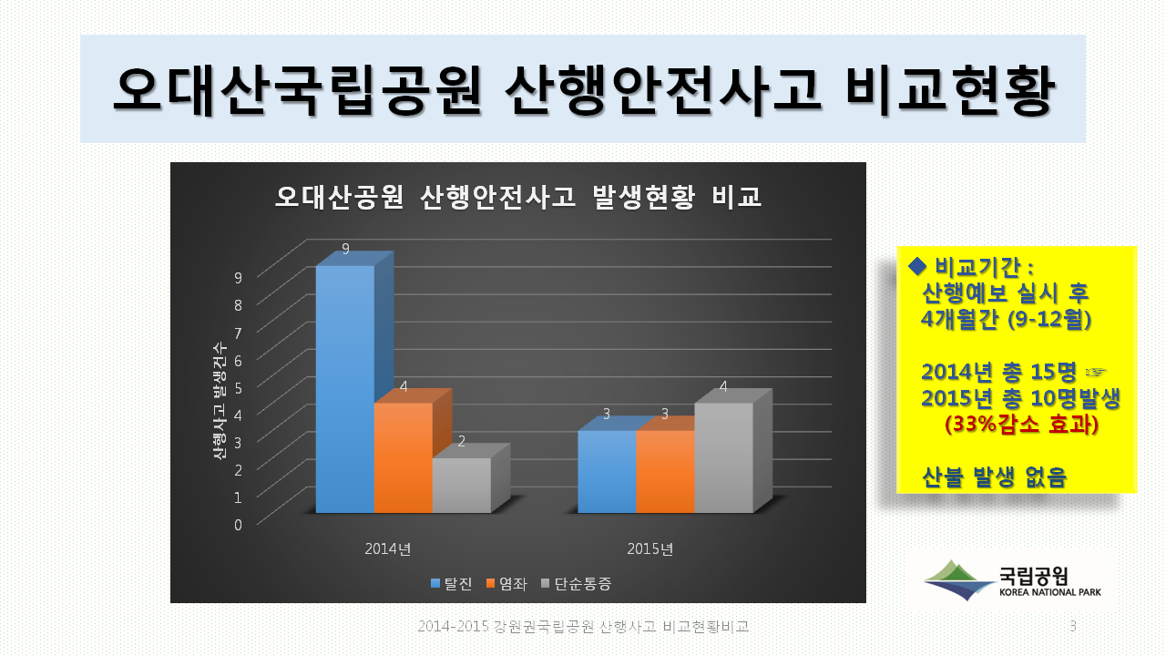 TBN°¿ø±³Åë¹æ¼Û°ú µµ³» ±¹¸³°ø¿ø»ç¹«¼Ò°¡ °øµ¿À¸·Î ±¹¹Î »êÇà¾ÈÀüÀ» À§ÇØ Áö³ÇغÎÅÍ Àü±¹ ÃÖÃÊ·Î ½ÃÇàÇϰí ÀÖ´Â »êÇ࿹º¸¹æ¼Û ½ÃÇà°á°ú, Àü³â°ú ºñ±³ÇØ »êÇà¾ÈÀü»ç°í°¡ Å©°Ô °¨¼ÒÇÑ °ÍÀ¸·Î ³ªÅ¸³µ´Ù.