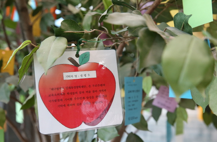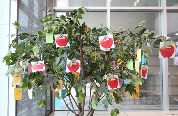 ¡¸´ë±¸±¤¿ª½Ã ÀÎÀçÀ°¼ºÀåÇÐÀç´Ü¡¹Àº Á÷¿øµéÀÌ ½ÂÁø, ¹ß·ÉÀ» ¸Â¾Æ ÀÚ¹ßÀûÀ¸·Î ±âÅ¹ÇØ Áص¥ ´ëÇÑ °¨»ç Ç¥½Ã·Î Çູ³ª´® ³ª¹«¿¡ Çູ ¿¸Å¸¦ ´Ü´Ù. Çູ³ª´® ³ª¹«´Â ½Ã±³À°Ã» µ¿°ü 1Ãþ ·Îºñ¿¡ ÀåÇбâ±Ý ±âŹ¿¡ ´ëÇÑ °¨»çÇÑ ¸¶À½°ú È«º¸¸¦ À§ÇØ ¸¶·ÃµÈ ³ª¹«¸ðÇüÀ̸ç, À̰÷¿¡ ÀåÇбâ±Ý ±âŹÀÚÀÇ °¨»ç¸Þ½ÃÁö¸¦ ´ãÀº Çູ¿¸Å¸¦ ´Ü´Ù.