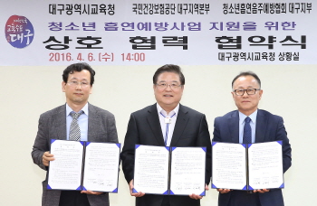 ´ë±¸½Ã±³À°Ã»(±³À°°¨ ¿ìµ¿±â)Àº 6ÀÏ(¼ö) ¿ÀÈÄ 2½Ã »óȲ½Ç¿¡¼­ Áö¿ª»çȸ ³» À¯°ü±â°ü °£ »óÈ£ À¯±âÀûÀÎ Çù·Âü°è¸¦ ±¸ÃàÇÏ¿© û¼Ò³â Èí¿¬¿¹¹æ ¹× ±Ý¿¬Áöµµ Ȱ¼ºÈ­¸¦ À§ÇÑ ¡¸Ã»¼Ò³â Èí¿¬¿¹¹æ»ç¾÷ Áö¿ø Çù·ÂÀ» À§ÇÑ ¾÷¹«Çù¾à¡¹À» ü°áÇÑ´Ù. À̹ø Çù¾à¿¡´Â ±¹¹Î°Ç°­º¸Çè°ø´Ü ´ë±¸Áö¿ªº»ºÎ(º»ºÎÀå ÀÌÅÂÇü), û¼Ò³âÈí¿¬À½ÁÖ¿¹¹æÇùȸ ´ë±¸ÁöºÎ(ÁöºÎÀå ±è´ëÇö) µî 2°³ ±â°üÀÌ Âü¿©ÇÑ´Ù.